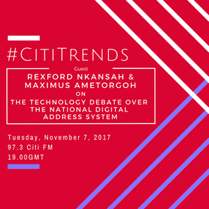 This article first appeared on KofiMusings.com. https://kofimusings.com/2017/11/08/cititrends-s03-ep-28-the-national-digital-addressing-system-the-technology-debate/ Another engaging week of technology conversations on #CitiTrends continues the discussion on the National…