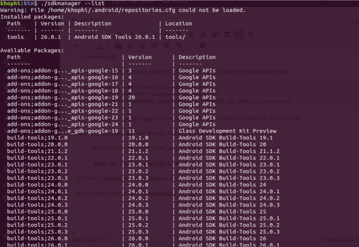 Let’s get up to speed with latest updates, by doing ./sdkmanager --update to update the SDK