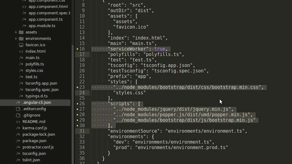 The highlighted sections above are the changes we will add in the .angular-cli.json file.