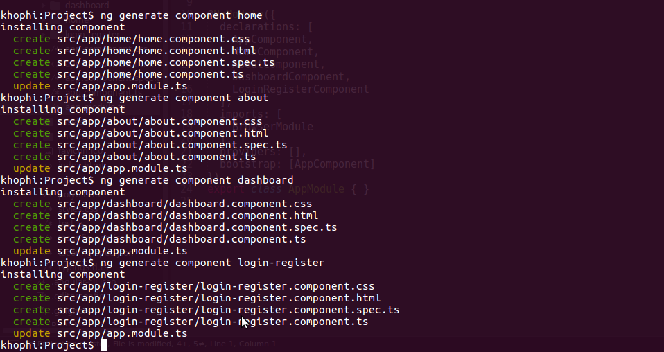 ng generate component home ng generate component about ng generate component dashboard ng generate component login-register