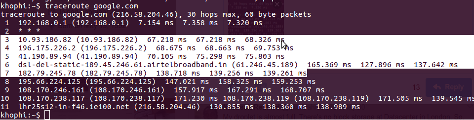 For Airtel, my single request went through 5 of their servers, some located in India. Ghana to India is very far!